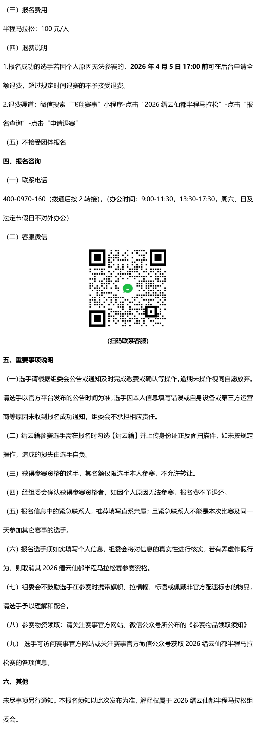 Registration Notes - 2026晨龙控股缙云仙都半程马拉松 -